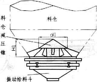慣性振動給料斗在設計計算中已考慮了一定的倉壓,但建議在料倉內物料高度大于2m時,在料倉內安裝料倉減壓錐,以確保振動給料斗更穩定地工作,特別是確保其給料精度更趨準確。料倉減壓錐應焊接在料倉內,并保持平穩。